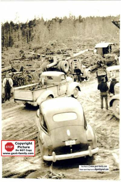 Share via Share via... Twitter Facebook Pinterest × NW Bay- Equipment - Scenes Nanoose Bay, British Columbia, Canada Northwest Bay Logging Co. Ltd. ca 1947-1950 Equipment, Logging Scenes Unloading the trucks into Northwest Bay near Cowichan Bay Logging Spar used in High Lead Logging notice all the guy wires used to hold it vertical 2 metal cables were used. Main Line for winching logs in, and lighter Haulback line, to return the chokers to the chokermen. Height was required to lift the butt end of the logs out of the bush. the wood poles were replaced with metal, then replaced with Sherman tanks modified for the job. Truck loaded with a generator Loading the Trucks at the landing Boss paying the Logging Show a visit Crummy Actually just a truck with closed box on the back, with seats like a bus. Used to transport the workers into the bush, from the Logging camps. Cab separate from the bus part. Scaling the logs? Low Bed hauling a Cat Tire Repair Shop The busiest place in the camp. 2 Man Gas Chain Saw in operation Notice the size of the tree. 4-5 ft. Shovel for Road Building North West name on boom. In 1947 it cost approx $8,000 / mi here to build a logging road. Sanding the icy roads from the back of a Pickup Cat c/w Arch, replaced with skidders. Photos above courtesy Grant Walker, part of his dad Bud Walker's Collection © Last modified: 2018/01/24 10:40by dlgent Log In