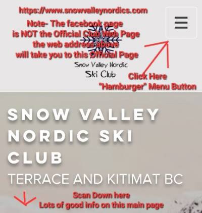 Share via Share via... Twitter Facebook Pinterest × Table of Contents Questions & Answers 1A. Rules, Rules, and More Rules? 1B. Where Do I Go? 2. Dog Rules 3. Day Pass 4. Where Do I Pay 5. Grooming Trails 6. *New- Are the Trails Groomed Today? 7. *NEW- What do I do when Grooming Machine Approaches 8. Plowing the Parking Lots 9. Shovelling the Steps and Walkways? 10. Paid Groomer 11. Rental Shop 12. Rent Skis, Boots, Poles? 13. Skis-Poles-Boots-Bindings Info 14. Snowshoe on Trails 15. Where is the Snowshoe Trail 16. Dogs on Trails 17. Walking on Trails 18. Flat Beginner Trails 19. Snowshoe Trail 20. Snowshoes for Rent? 21. Icy Trails 22. Weather, Driving Conditions 23. Where do I Park? 24. Snow-Kiti Groomer Breakdown 25. Lost and Found 26. Quality of Exercise 27. Clothing Required 28. Safety 29. Covid 19 30. Lit Trails 31. What's a Ginzu Groomer? 32. What's a Beater Bar? 33. What's Track Packing? 34. What is the Renovator? 35. What are Classic Tracks? 36. What is "Old Smokey?" 37. What is this Cookie thing about? 38. Dog Trail Outhouse 39. Annual General Meeting 40. Summer Trail Maintenance 41. Cutting Trees and Firewood 42. Outhouses External Links Questions & Answers Kitimat-Terrace/Thornhill and area, BC, Canada This page has many Questions and Answers to various Cross Country Ski Issues, at the Snow Valley Nordic Ski Club (SVNSC), aka: Onion Lake Cross Country Ski Trails, Located between Kitimat and Terrace BC Please look for your answer on The Official SVNSC Site First, then this Q&A page, Before asking your question on facebook. Main Club Web Page View above, Jan 2025 On this page… Use the Table of Contents Button and you can look for one particular Question (see photo below for its location on this page) Table of Contents Button Top Right, Just above the Canadian Flag Remember to Scroll Down the Long List Then Pick and Choose the Question(s) You are looking for, and skip the rest if you wish! 42 Questions/Comments/Answers, and my 2 cents worth, Updated Nov 9, 2025 Top right is a button to share this page link to various social media sites. If you know a new skier, Please send the link to them. If it saves them asking a duplicate question over and over again, or maybe learn a new safety item, it will be worth a minute of your time. Please Share this Link! Please Note- This is NOT an Official Club Page My Disclaimer and General Info, open hidden section below Click to display ⇲ Click to hide ⇱ Note- I do not get paid per hit, or anything else. No ads, No pop ups, No cookies, No privacy issues at all. My site is as secure as it gets. I don't collect any information on anyone. I didn't get paid to build this page, or any of my pages for that matter. The Executive nor any other member has editing rights to my page. If you don't like my content do not complain to anyone but me. I add info as I see it from volunteering out there for many hours each year. Here are some Questions I have seen over and over again on facebook, and they require lots of volunteer time to answer them. Hope this answers some of the questions you may have without putting more strain on the Executive or other volunteers. Note- see links at the bottom for answers to some of these questions as well, on the Club's Official Pages. Note- I don't ski, never have, nor do I know all the answers, here or anywhere for that matter, but using some common sense, have figured a few things out for myself, or read about various topics on other sites, so want to pass some help out to the newcomers to the Club, and maybe a refresher for older members. I am a Member, I am NOT on the Executive, I am friends with some executive members, and some of the General membership. I don't have any control of any of the Club rules. If you don't like the rules, then I suggest you run on the Executive and with a democratic vote at an AGM they might be changed, with approval of the Government after all that. Don't join the club if you disagree with some or all of the rules. Most of these rules have been in place for years for a reason. Reasons you need to find out about before you bitch! Don't like it, don't join! They are taking a survey of the membership Dec 2021, suggest you get your 10 cents worth in there. If what you ask for is ruled out, there will be a reason for it. Not everybody likes my ideas or these pages for that matter. If you don't like what is printed here, don't bitch to the Executive, send me a note, and deal with me direct. Contact button bottom of all my pages. Please refer always to the Club's Official site, most of this information is on there. Link below I have given the club total authorization to add this page, or any of my Snow Valley Club pages, in whole or in part, including photos etc to their official page. If they wish to leave it here only, that is fine with me. It will always stay here as a copy either way. YOU ARE SKING AT YOUR OWN RISK OUT THERE! Have you thanked a Volunteer on Facebook Today? Wouldn't it be nice if everyone did? Instead of fighting with a negative comment, add a bunch of nice comments, and push the negative one down to the bottom of the page, into oblivion, where it belongs. Don't reply to the person looking for a fight. Ignore them, it will drive them crazy! 1A. Rules, Rules, and More Rules? The Club has set rules in place over the years for everyone to feel safe and enjoy the great trails that many Volunteers have worked hard for years now to set up. The Rules will be on many signs you will see on the Trails and at the Lodge. You will read many rules below that you are expected to follow. Use Common Sense if no sign or rule applies. The more you bitch, the more you gripe, the more hardship and stress you put on the few volunteers the club has now, that are willing to do all the hard work. I have noticed the few that bitch and complain do not do one minute of volunteer time! Coincidence? You want to change the rules on the dog trail? How about volunteering to run the dog trail you have no