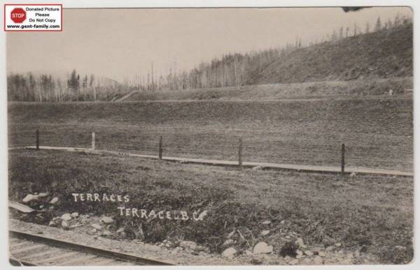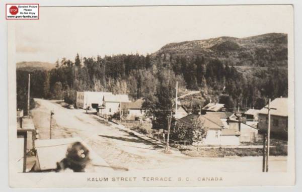 Share via Share via... Twitter Facebook Pinterest × Terrace and Area- Postcards Page 1 Terrace, BC, Canada All postcards below donated by Darren Rieberger, Brentwood Bay, BC, Sept, 2017, with thanks! 1. Terrace BC, Thornhill Mountain in Background, Skeena River in Foreground, Photo by W. Mantel 2. Land Terraces shown in this photo, Where Terrace BC got it's name from. Railroad visible, I think this was Marsh Cres area today George Little's Pre-Emption location. 3. Frank's Oat Field, West End of Terrace. Frank Family were early settlers here, operating a dairy in this area, until mid 1970's. 4. Kalum St, showing East side Between Lakelse and Lazelle, Police Station on the corner, see #12 5. Kalum St, Looking North from the Railroad Tracks, Old Terrace Hotel shown on right Taller building in next block was the Sparkes Brother's store. 6. Kalum St, almost same view as 5 above, Only in the wintertime. 7. Kalum St, from Lakelse Ave, looking south to the tracks. First building on the right was the Northwest Sportsman Sporting Goods Store that burnt down in 2016 Looks like a clothing store at the time of this photo. I know a cafe was in there during WWII In 1921 The Bank of Montreal moved into this building. All the other buildings on that side of the street are gone now, but the Rexall Drug Store building, which was a toy store in 2017, NW corner of Greig Ave. It was a drug store for many years. Overwaitea Store location shown. Silver Tip Cafe sign is visible further down the street. The 3 story building next to Overwaitea has a sign “Unknown name, Groceries, and Meats” under that. 8. Lakelse Ave Looking west from Kalum St. A Hugh Birch photo. The George Little House is visible in the photo. Today it is the Via Rail Station, moved to Kalum St. 9. Logging Truck on Lakelse Ave. 10. Man on Horse in front of the Philbert Hotel, Which became the Skeena Hotel, see Photo #14 Note- See correction below Helene McRae thought this was Walter Warner on the horse but turns out that was not right. From the Herald Newspaper she quotes- “Walter Warner, age 83, one of the town's “first” citizens passed away in Terrace hospital in the late afternoon of Feb. 27, 1961. (1961 has been added by pen) His passing marks another loss to our community for he contributed much. His stories of the early days when he traversed the old telegraph trail to the Naas River will long be remembered and also community projects, including dedicating a bed in Terrace Hospital to his late wife. Walter has been in this part of the province since the ealy 1900. He was purser on the river boats that plied the Skeena River from the coast as far as Hazelton. The many stories written for the “Herald” of those days, are priceless hisory. In 1920 he was telegraph operator, travelling by foot, in all kinds of weather, from Rosswood to the Naas River.” But correction today Nov 29, 2020 from Sharon Ellis turns out this is her Great Grandfather- Samuel Haudenschild Sr. 11. Lakelse ave, taken from approx Kalum St today, taken from a horse and wagon. The square wooden box frames visible, are protecting the young trees planted by George Little on Lakelse Ave. 12. RCMP Police Station On NE corner of Kalum St, and Lakelse Ave. Building exists today as a commercial building, 2017 Originally the First BC Provincial Police Building in Terrace. 13. Original Copper River Bridge on Highway 16 14. Skeena Hotel, SH, originally the Philbert Hotel (see my Hotel History Page) Note- Ladies Entrance sign on left, Men's Entrance Sign on right. Yes they were separated sections in the early 1970's. Grill Sign on right corner. When the Hotel burned down the Cafe Was in the front left corner, opposite this sign 15. View of Terrace Townsite 16. Skoglund Logging Truck, Company owned by Ray Skoglund, who also owned the Hot Springs, see photo #18 17. Sept 4, 1944 opening Skeena River Highway, Highway 16 today, from Terrace to Prince Rupert Note from Darren, “the two men on the podium are the respective mayors of Prince Rupert and Terrace, Harry Daggett and Emil Haugland. Although I guess Emil’s title (then) was Chairman of the Board of Village Commissioner? ” 18. Little Canyon, near Terrace, location of Old Skeena Bridge. Little Canyon Name and History All postcards above donated by Darren Rieberger, Brentwood Bay, BC, Sept 2017, with thanks! Rieberger Postcard Index Terrace and Area Page 1 Terrace and Area, Page 2 Terrace and Area, Page 3 Old Skeena River Bridge Lakelse Lake Area Postcards © Last modified: 2020/11/29 16:40by dlgent Log In