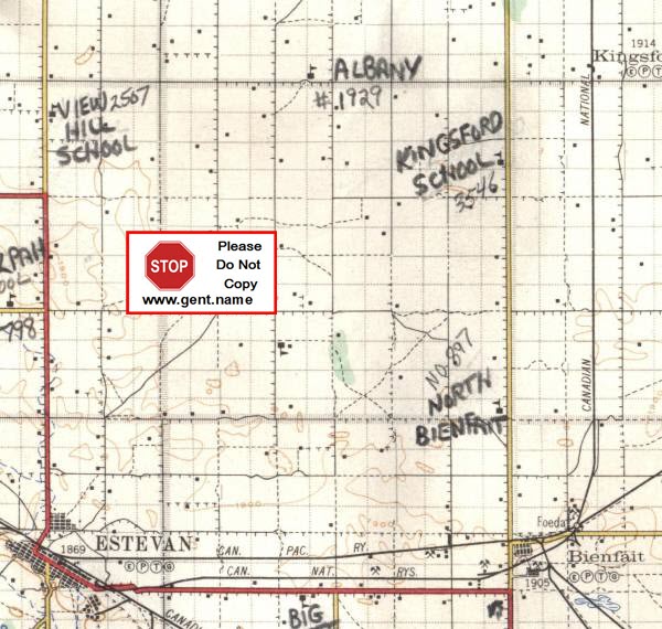 Share via Share via... Twitter Facebook Pinterest × View Hill School #2507 Benson, Estevan, Saskatchewan, Canada Straight North of Estevan SK Part of my Dad's 1927 Map SW Section 35, Township 3, Range 8, W2 © Last modified: 2018/02/26 18:57by dlgent Log In