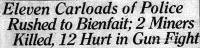 Share via Share via... Twitter Facebook Pinterest × Bienfait- Miner's Riot, Sept 29, 1931 Bienfait, Saskatchewan, Canada Picture taken at the beginning of the Riot, corner of Souris Ave. and 4th St. in Estevan SK Postcard Courtesy Grant Walker, Studio City, CA Some of the Pictures below, were taken June 1999 by a Sony Digital Camera, one of the first available so quality wasn't the best. Tuesday September 29, 1931 The Bienfait Coal Strike resulted in the death of these 3 miners in Estevan, near the Courthouse, on 4th St. Estevan, during a Striker's Parade. Repeated attempts by some, have tried to erase the yellow stripe, and the word “RCMP” from this headstone. And then there is still those in the area who restore this graves headstone, to this condition shown above. Names on the headstone above P. Markunas age 28 N. Nargan, age 28 J. Gryshko, age 29 Peter Markunas- age 28, born in Lithuania, his widow, Amelia, nee Billis, re-married John Budris, who also passed away Peter worked at M & S mine prior to the riot All 3 of these men buried in Bienfait, are considered Martyrs of the Labour Movement. These are also the spelling of the names recorded in the Encyclopedia of Saskatchewan. Leader Post in Regina in 2005 stated the names as: Nick Nargan (23), Julian Gryshko (26), and Pete Markunas (27) In the Estevan Mercury, dated Oct 1, 1931, they list these names: Dead: Julian Jryshko, age 35 of Bienfait, striker, employed at M & S Mine, Leaves Wife and one child, shot through abdomen, (near Fegan Service Station in some records, I believe it was Robert Buck Fagan's Garage), Identified Wednesday by Steve Stepanski, His Body was claimed by his wife. Died in the waiting room on arrival at the Estevan Hospital Nick Narwan, age 26, of Taylorton, striker, employed at M & S Mine, He was single, shot through heart, Identified only by a Union Card in his pocket, His Body was Unclaimed, Shot dead, while standing on the Fire truck defying the police. Reported Dying: Pete Markunas (See Above) (alt spelling Markini) of Bienfait, striker shot in right leg, in Weyburn General Hospital. He died early Friday Morning, 3rd man to die during the riot, Buried in Grave Above. Louis Revay Of Crescent Collieries, striker, shot in chest and right thigh, in Estevan Hospital. Louis Revay was among those immigrants arrested, charged with unlawful assembly, and ordered deported. Mike Kyatick of Crescent Collieries, striker, shot above heart, bullet entering from rear, in Estevan Hospital Injured: John Forberg of Roche Percee, striker, bullet wound in left leg, in Estevan Hospital. Frederick “Fred” Konopaki, (alt spelling -Konopacki) striker, bullet wound in left leg, in Estevan Hospital. b- Mar 6, 1894 d- Feb 4, 1954 buried in Bienfait Cemetery He was married to Nettie Konopaki, nee ? b- Oct 14, 1896 d- Nov 16, 1976 buried in Bienfait Cemetery Fred had a brother Alex Konopaki. b- Mar 25, 1901 d- Mar 4, 1983 buried in Bienfait Cemetery Alex married Mary Bozak b- June 25, 1909 d- Jan 1, 1973 buried in Bienfait Cemetery The 2 brothers ended up owning a coal mine in the area. They worked at the National Mine at the time of the strike. Fred and Nettie had a son John Konopaki b- Jan 10, 1918 in Bienfait SK d- Jan 16, 2007 in Red Deer AB, age 89 wife Mary V. Lylyk another son Walter Konopaki b- Nov 20, 1925 in Bienfait SK d- June 18, 2007 in Moose jaw SK, age 81 married Helen Marie Konopaki, nee Bookout Wrally Konopaki, lives in Penticton BC William “Bill” Konopaki, wife Lenore nee Mantei, lives in Penticton BC Tony Stankewich, striker, bullet wound in left leg, in Estevan Hospital. Steve Daryluk of M & S Mine, striker, bullet wound in right leg, in Estevan Hospital. Charles Grigalis, of M & S Mine, striker, shot in toe on left foot, in Estevan Hospital. Born in Lithuania, arrested, tried and jailed, after the strike. He was fined $150.00, and spent 2 years on his own reconnaissance, after paying $1,000.00, and 2 sureties of $500.00 each. Clive Butterworth of Estevan, Music Teacher, bullet wound in right thigh in Estevan Hospital. Shot while walking up 11th Ave. Clive Butterworth 1946 Oct 30, 2011, I received a nice email from Clive's son, Simon Butterworth. Turns out Clive told all his relatives about this story, over the years. It also turns out he was a teacher at the Potter's School of Music, in Estevan, at the time of the riot. Teaching music and playing the piano thru the depression. Miss L. King of Nelson, Lancashire, England, shot through left shoulder, in Estevan Hospital. Visiting a Mrs T. Orr, and shot while watching from an upstairs window. Frank Hanna of Frobisher, Garage man, shot in right leg, bone fractured, in Estevan Hospital. Constable Sutherland, RCMP, severe scalp wounds, released from hospital Wednesday morning. Constable Palmer, RCMP, shot through left arm bone fractured, released from hospital Wednesday morning. Ewald Krueger, Estevan, bullet wound in left cheek. He was standing on the roof of a house nearby. Tony Marten, age 15, Estevan, shot in right arm, just above the wrist, in Estevan Hospital. Mike Pulhauriski, found by police in bed, at M & S Mine, Wednesday, with severe bullet wound in back, taken to Estevan Hospital. Estevan Chief of Police Alex E. McCutcheon, deep scalp wound from blow on head. Detective Sergeant Mortimer, RCMP, badly bruised shoulder. Sergeant John Molyneux, RCMP, left ear torn. Four other Police Officers were treated for wounds, no names shown. Next came the Canadian Press, Articles below printed in every newspaper in Canada. Newspaper articles on the strike aftermath. Sept 30, 1931 Oct 1, 1931 Oct 2, 1931 Oct 3, 1931 Oct 5, Article- Estevan accused to stand trial in March 1932 Oct 5, 1931 article Then came more Trials, the next Spring Mar 3, 1932 Mar 4, 1932 John Robert Brodie Biography This is a Plaque placed by the Saskatchewan Federation of Labour, unveiled by Amelia Billis Budris, Peter Markunas's widow Estevan Courthouse, Location of the 3 Miner's Deaths Old 